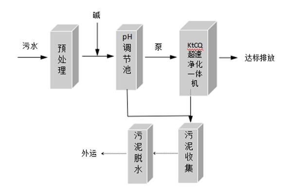 預處理:首先對污水進行預處理,中和污水中部分酸,減少后續(xù)處理設備的負荷、同時減少對后續(xù)設備的腐蝕作用。