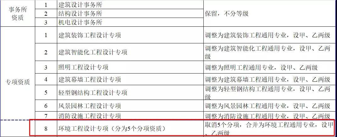 2.工程設計資質。保留綜合資質;將21類行業資質整合為14類行業資質;將151類專業資質、8類專項資質、3類事務所資質整合為70類專業和事務所資質。綜合資質、事務所資質不分等級;行業資質、專業資質等級原則上壓減為甲、乙兩級(部分資質只設甲級)。