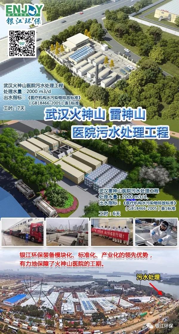 銀江環保不僅是城市溢流污染治理的先行者,也是抗擊新冠病毒疫情的一線環保公司,高效保質地在7天之內完成武漢定點醫院——火神山、雷神山醫院污水處理全流程裝備的設計、供貨、安裝任務,模塊化、標準化、產業化優勢得到了充分的體現。銀江環保以“誠信立業、創新發展”的企業理念,以“管理規范、技術領先、品質卓越”為方針,為客戶提供最佳解決方案,優質產品、優質服務。相信在眾多優秀的銀江人的不懈努力下,銀江環保必將成長為一流的水環境綜合治理服務商,為中國的環保事業貢獻出無限力量!